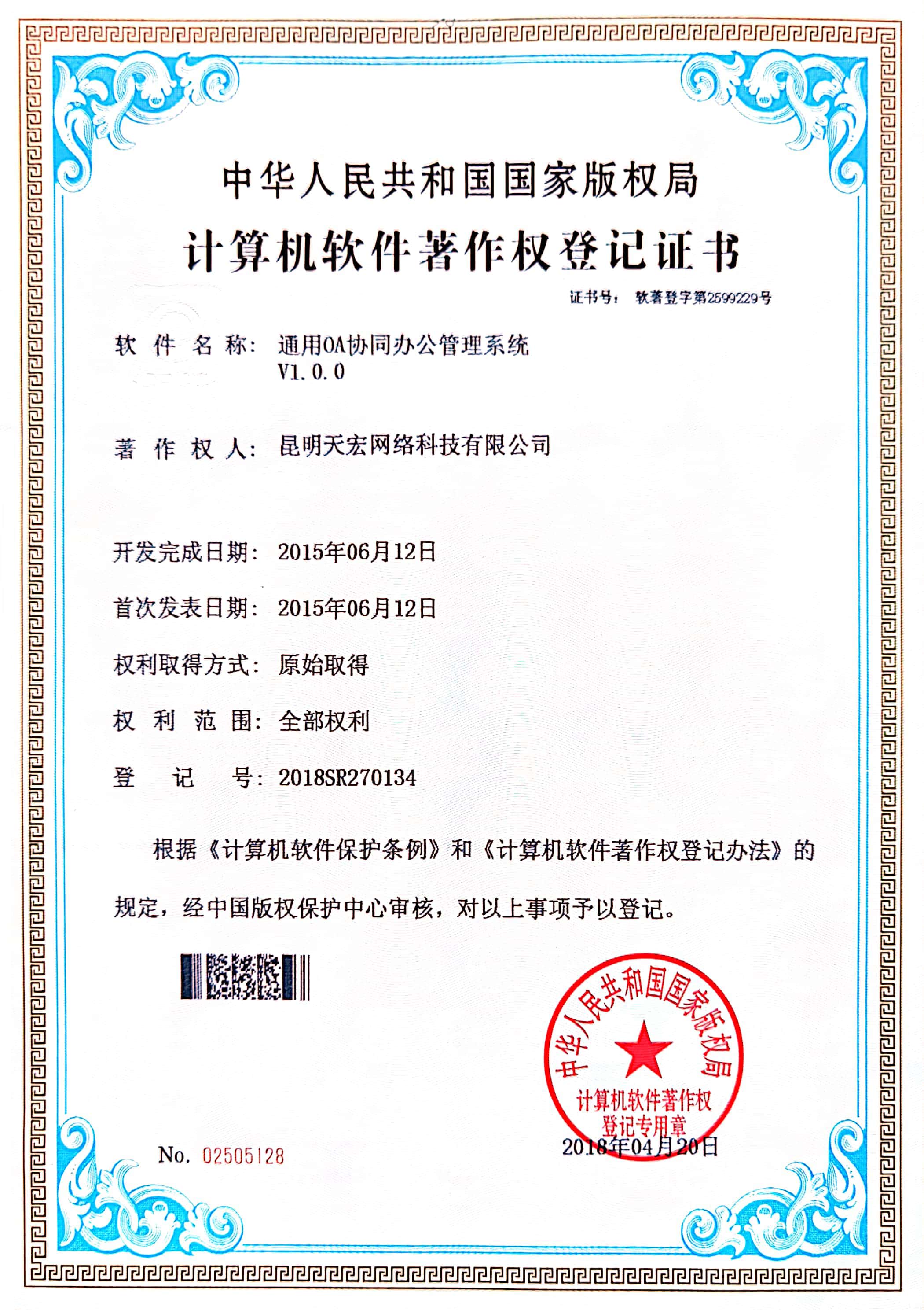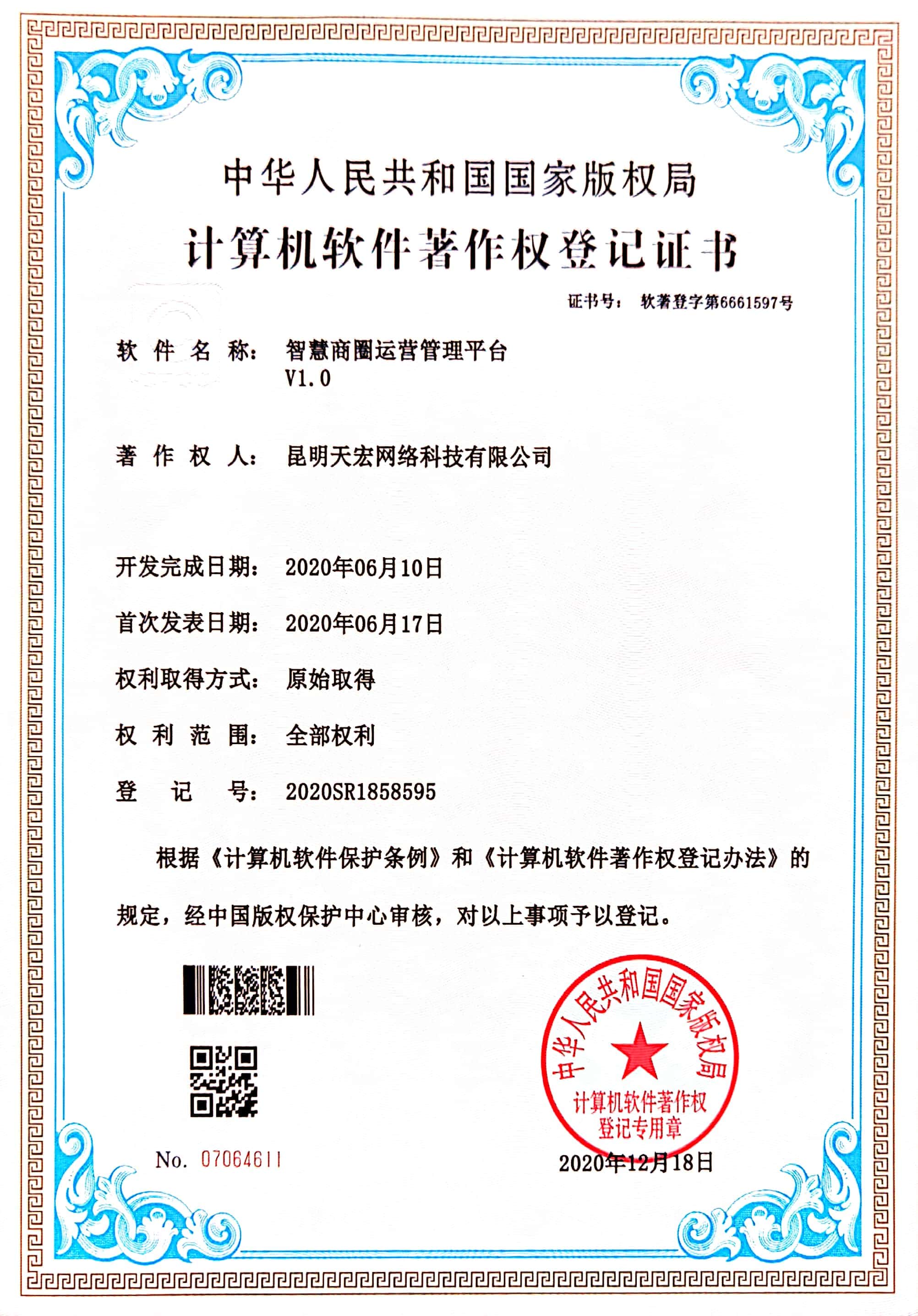 天宏網(wǎng)絡(luò)通過不斷的研發(fā)創(chuàng)新,現(xiàn)擁有50多項計算機軟著證書,包括多商家點餐系統(tǒng)、門店收銀管理系統(tǒng)、通用OA協(xié)同辦公管理系統(tǒng)、智慧商圈運營管理平臺、天宏健康智慧+系統(tǒng)、同城O2O管理系統(tǒng)等。